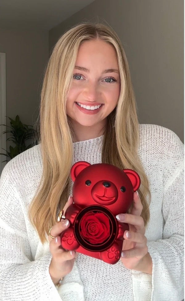 Ein Bär, eine Rose und eine persönliche Gravur – geschaffen für unvergessliche Augenblicke.